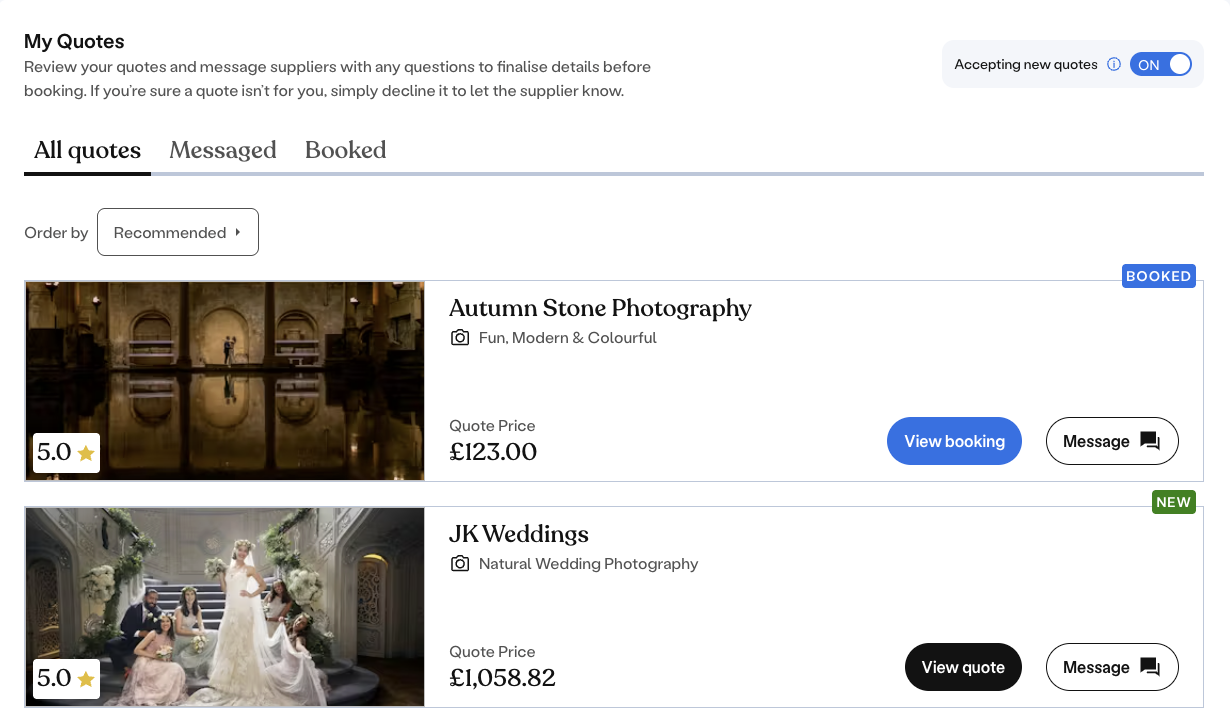 Once you complete our enquiry form, we’ll share your event with the suppliers who are the best match. If they’re available, they’ll send you quotes directly to your Togather dashboard, your personal details always stay private.