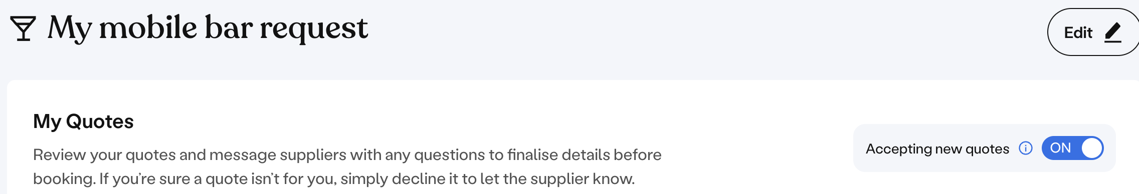 If you want to pause any new quotes coming in to consider the ones you already have, you can do this by viewing your request in your Togather account and switching the 'Accepting new quotes' toggle OFF